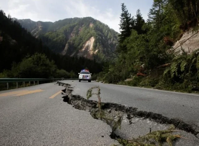 A file photo of a crack running through a mountain road after an earthquake. PHOTO: REUTERS