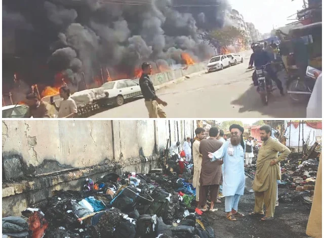 The fire erupted suddenly among the temporary vendor setups, within the jurisdiction of Kharadar police station. The flames spread rapidly, engulfing dozens of stalls. Police, fire brigade, and rescue teams rushed to the site to contain the blaze.