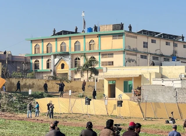 Security forces personnel stand guard as members of the media film from a coordoned area following a deadly explosion at a Shia Muslim mosque, in Islamabad, Pakistan, February 7, 2026. PHOTO: REUTERS