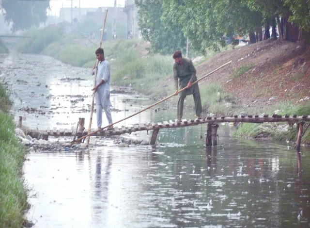 Water and Sanitation Agency workers clean a sewerage drain amidst a downpour in Faisalabad. Sanitation and water supply responsibilities in several more cities have been transferred from municipal corporations to WASA. Photo: APP