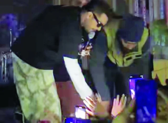 Screengrab from a video posted online shows Asim Azhar’s moment with a bouncer during a concert in Karachi. PHOTO: FACEBOOK/Pakistani Cinema
