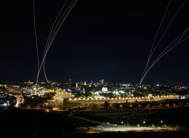 Interception attempts are made by Israel as missiles are launched from Iran, following Israeli and U.S. strikes on Iran, in Jerusalem March 1, 2026. PHOTO: REUTERS