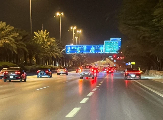 Vehicles drive along a street near the Diplomatic Quarter in Riyadh. PHOTO: REUTERS