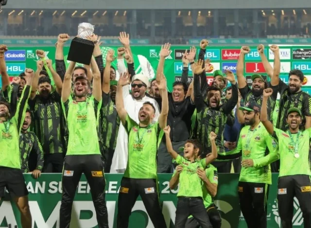 Lahore Qalandars celebrate winning the 2025 HBL PSL 10 title.