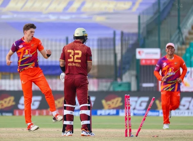 However, Kingsmen’s innings unravelled in the middle phase as wickets continued to fall. Labuschagne anchored briefly before being trapped lbw by Saad Masood off the final ball of the ninth over. Maxwell’s dismissal followed immediately, as Ben Sears produced a sharp delivery that shattered the stumps and exposed the middle order.