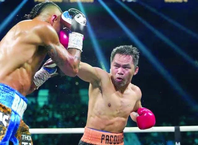 Manny Pacquiao fights Mario Barrios at MGM Grand Garden Arena. PHOTO: REUTERS