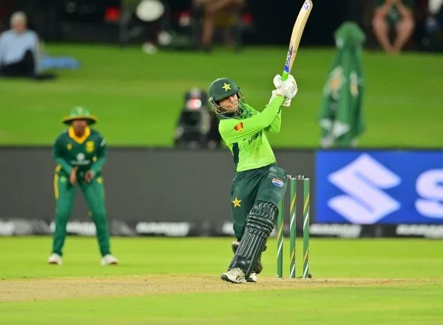 Opening batter Tazmin Brits scored 77 off 62 balls, featuring ten fours and two sixes, after losing her Laura Wolvaardt for 20 as the duo put on 55 off the first 8.4 overs. Pakistan struck in 16th and 19th over as Faye Tunnicliffe and Brits departed to spinners Aroob and Nashra, respectively.