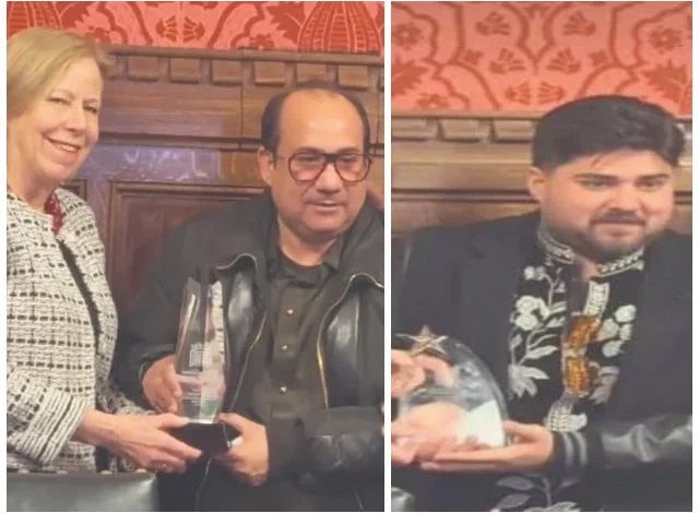 In a moment of international recognition for Pakistan’s music industry, legendary singer Rahat Fateh Ali Khan and his son Shah Zaman Khan have been honoured with awards at the British Parliament.