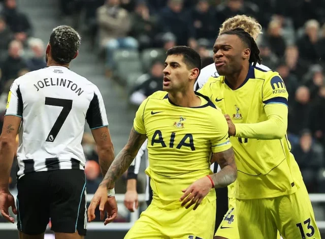Tottenham Hotspur captain Cristian Romero scored with a diving header and an overhead kick to snatch a 2-2 draw for his side at Newcastle United in an entertaining Premier League clash on Tuesday, with the equaliser coming deep in stoppage time.