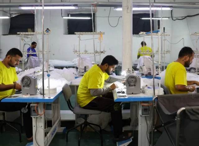 Raj, 32, Shail, 30, and Gaurav, 23 (no last names given), migrant workers from India, sew tulle fabric at a textile factory in the town of Balashikha outside Moscow, Russia, January 20, 2026. PHOTO: REUTERS