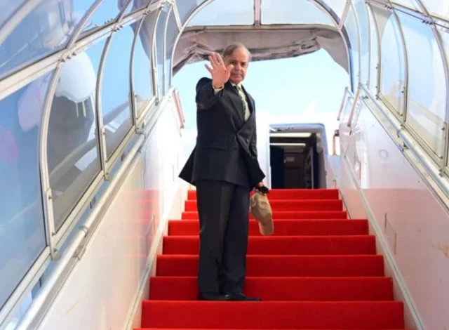 Shehbaz is accompanied by Minister for Information and Broadcasting, Attaullah Tarar.
