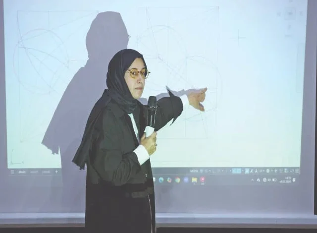 She explained that geometry in Islamic art is rooted in order and precision, where even simple forms are based on complex principles. Demonstrating the use of a compass and angle division, she said a clear understanding of basic geometric rules is essential for accurately creating shapes and patterns.